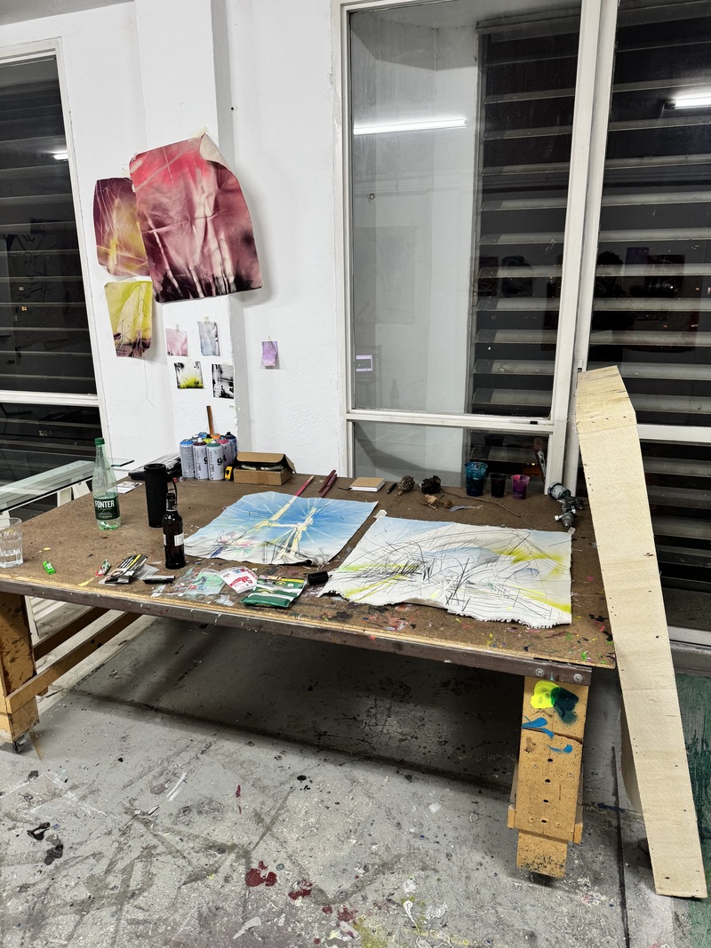 Po loňské rezidenci v Lisabonu, kde experimentoval se skleněnými deskami a průhledností, se v Barceloně Vámos plně ponořil do zkoumání vztahu mezi fyzickým prostorem a digitální fragmentací.