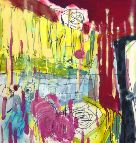 mixed media: uhel, akryl a akrylový sprej na plátně