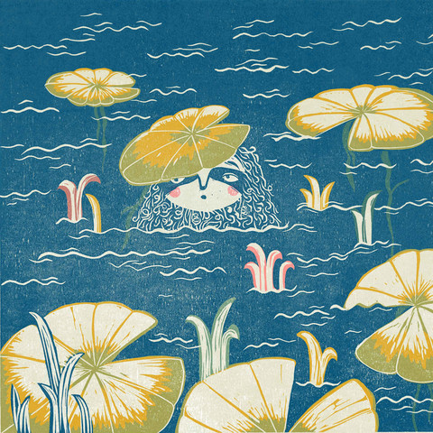 Ilustrace z autorské knihy pro děti Lenochodi líně chodí. Grafika byla vytvořena technikou digitálně kolorovaného linorytu. K. V.